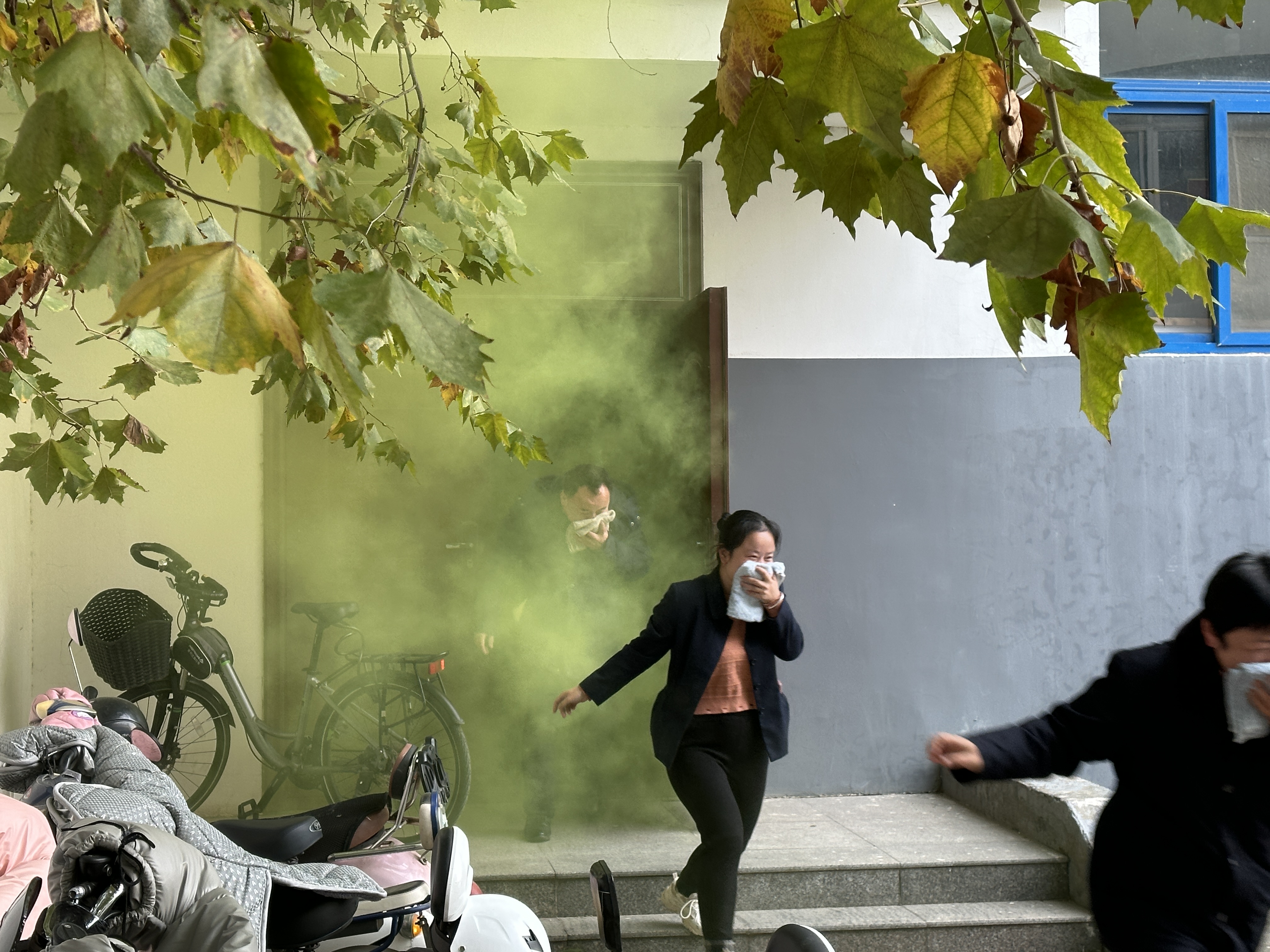 讲座结束后,程教官组织所有参会员工进行火场逃生演练,现场示范了如遇火灾时,应该用怎样正确的姿势进行逃生。随后,在公司办公楼内模拟突然“起火”,走廊间瞬间浓烟呛鼻,随着火灾警报声响起,大家手捂湿毛巾在口鼻上,半蹲式贴着墙跟有秩序的从安全出口撤离。不到1分钟时间,全员撤离到楼外安全地带。整个演练过程组织有序、分工到位、有条不紊,取得了预期效果。随后程相才教官向参训人员示范讲解灭火器使用基本要领,手把手指导如何操作消火栓,员工们逐一操演。