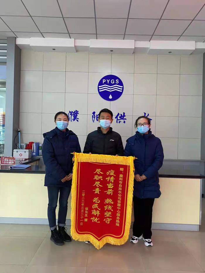 3月22日,阿姨要求家人专门来自来水公司客户服务中心送锦旗,以表达感激之情。“这是我的工作,我要用真情去温暖每一个用户”。话语不多,却体现了热线专员李文龙对工作执着的态度。疫情防控期间,市自来水公司客服中心严格遵守24小时在岗值班制度,做到来电必接,耐心解答,及时派单。截至3月21日,本月共接听电话3280个,派单667个,都及时得到解决。