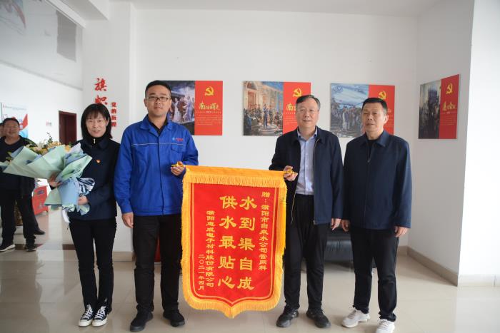 4月12日,濮阳惠成电子材料股份有限公司企业代表将一面写着“水到渠自成,供水最贴心”的锦旗送到了市自来水公司管网科,感谢在供水报装工作中对企业的全程服务与积极帮助。