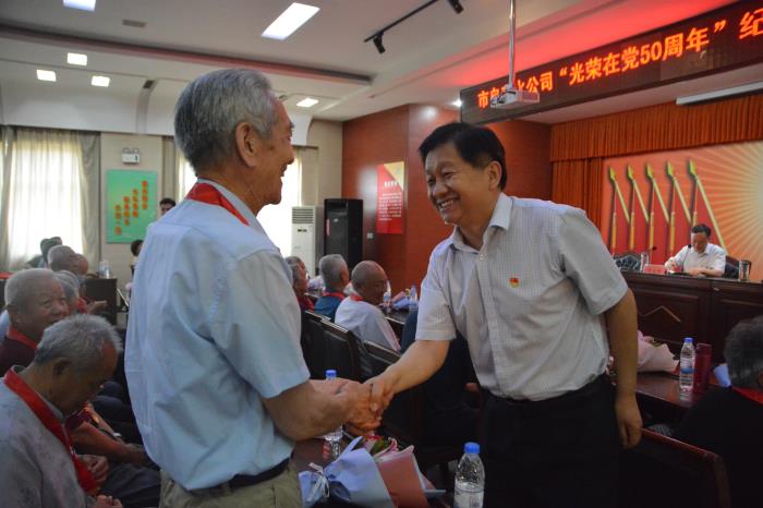 随后,又举行了“光荣在党50年”纪念章颁发仪式,向党龄达到50周年以上的27名老党员代表颁发“光荣在党50年”纪念章,仪式上,公司领导向全体老党员表示最衷心的感谢并致以最崇高的敬意,感谢他们的不懈努力和无私付出。