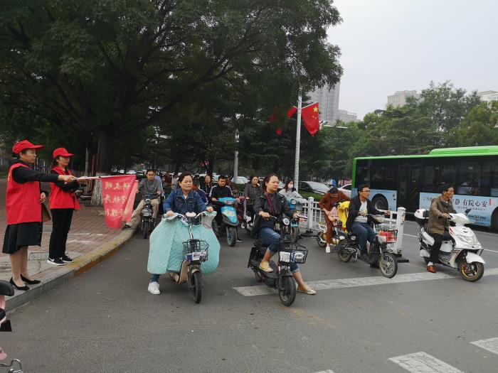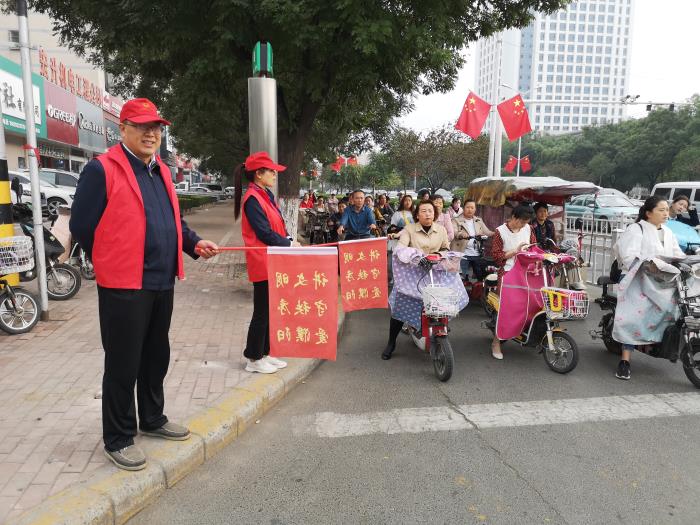 为进一步增强市民安全文明出行意识,摒弃交通陋习,营造文明和谐畅通有序的道路交通环境,争创全国文明城市,濮阳市自来水公司9月20日出行早高峰在路口执勤,协助交警疏导交通。