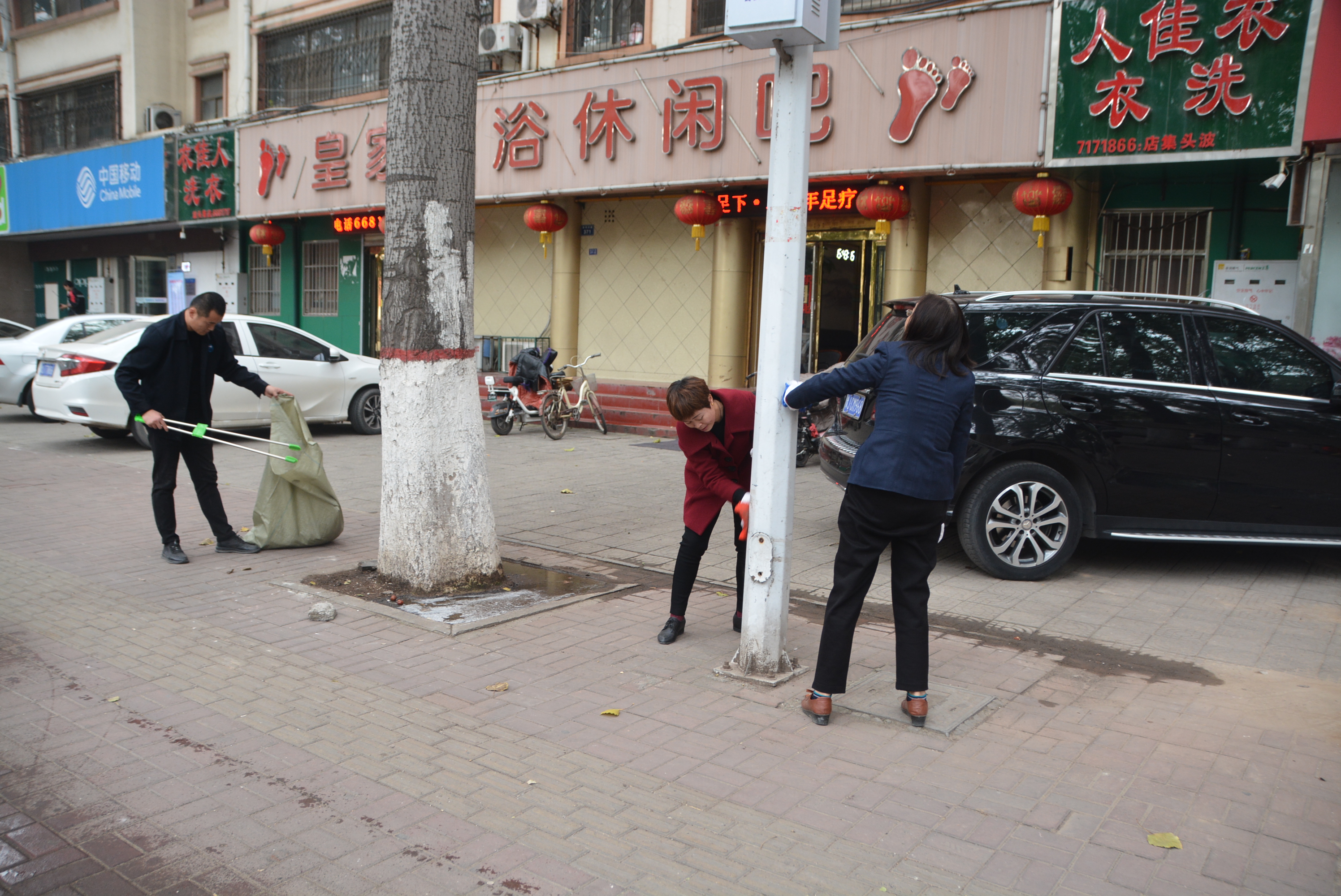 ,清洗沿路工艺广告栏、垃圾箱等公共设施沉积的浮土,清除路边墙体、电线杆上面的小广告