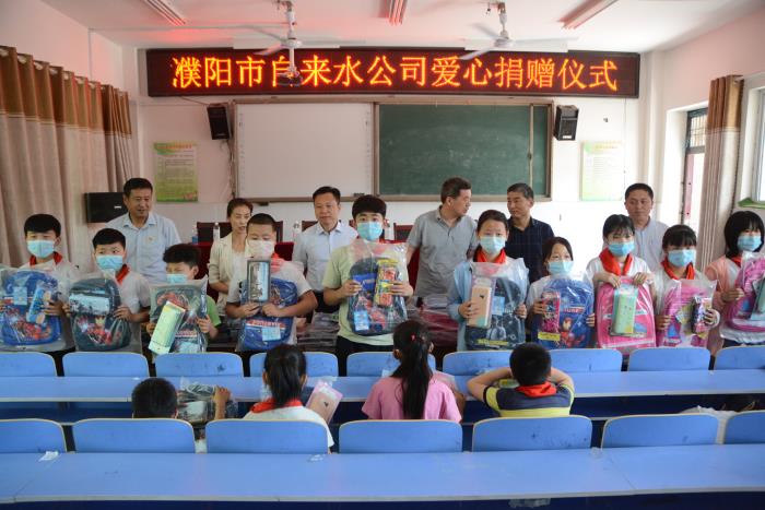 本次爱心捐赠活动共捐赠书包、文具盒各75套,濮阳市自来水公司将继续开展多种形式的帮扶活动,进一步关注少年儿童的成长,以更务实更有效的举措,助力帮扶村精准脱贫,推动乡村振兴发展。