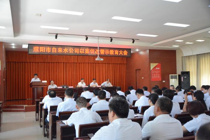 为推进全面从严治党向纵深发展,9月16日上午,濮阳市自来水公司召开以案促改工作警示教育大会,全面贯彻落实省、市推进以案促改制度化常态化文件精神,深入学习贯彻党章党纪党规,把握新时代全面从严治党的趋势和要求,会上,宣读了市纪委《三亿网站对濮阳市自来水公司工程项目管理有关问题的纪律检查建议书》和市华龙区人民法院刑事判决书,公司党委委员、副总经理冯慧兴、钱守洪,纪委书记赵俊明,副总经理马作胜和重点科室主要负责同志进行了表态发言,公司党委书记李大放作了重要讲话。公司副科级以上干部、重点部门和重点岗位干部职工参加会议。