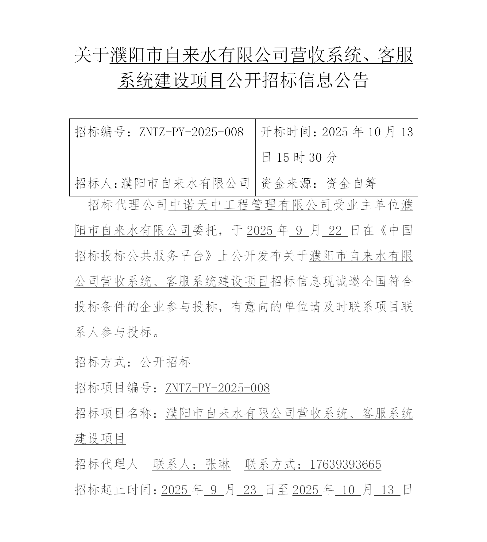 濮阳市中原路市政供水管道工程(濮上路-兴濮路)采购信息公告